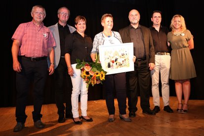Im Rahmen des Festaktes verlieh die Theaterrunde mit einer Laudatio von Emmerich Gratzl der ehemaligen Obfrau Brigitte "Gitti" Wolf die Auszeichnung "Ehrenobfrau der Theaterrunde".
