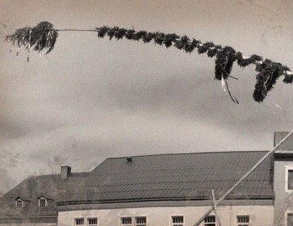 "Am 30.04. wird auf dem Marktplatz an der gewohnten Stelle der Maibaum durch die hiesige Theaterrunde aufgestellt. Es ist erfreulich, dass man den alten Brauch nicht abkommen lässt. Tagelang schon sind fleißige Helfer mit dem Schmücken des Maibaumes beschäftigt."